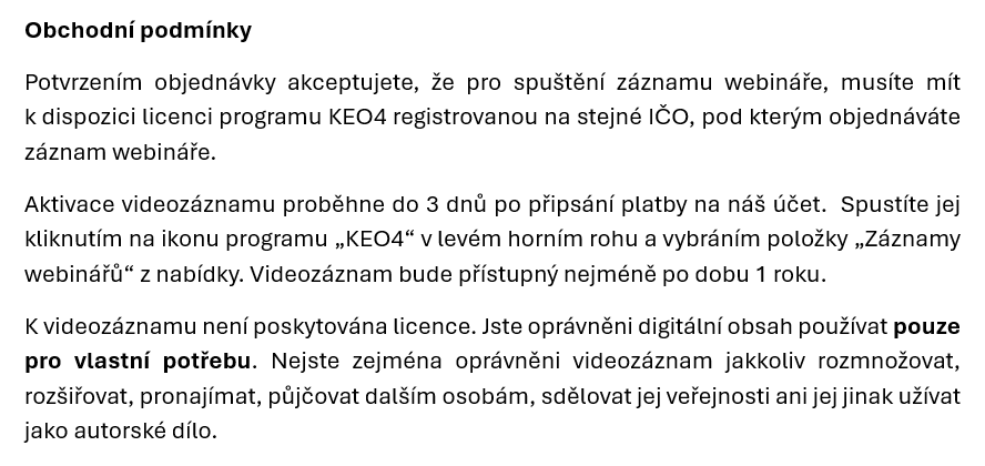 25. 5. 2023 - KEO4 Sklady Organizace: Objednavatel: IČO: Jméno: Název: Příjmení: Ulice: Telefon: Město: E-mail: PSČ: Opište prosím kód: Vygenerovat nový kód Souhlasím s obchodními podmínkami OBJEDNAT ZÁZNAM WEBINÁŘE